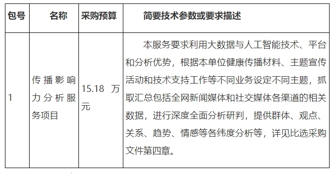 中国健康教育中心传播影响力分析服务项目比选公告