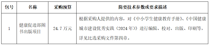 中国健康教育中心 “健康促进部图书出版项目进行比选采购,现邀请合格供应商参加比选响应。